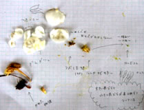 花びらが2つあって,両方花びらといえるのか迷った。もしかしたら,下の方にある花びらのようなものが子房で,中のものが胚珠なのかもしれない。 |