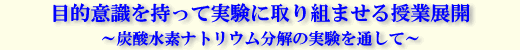 新学習指導要領では,2・3年生の授業時間が増え,週4時間になる。増えた時数は,考えたり,書いたり,議論したり,発表したりという言語活動はもちろんのこと,観察や実験などの体験活動にも使えることになる。そこで,時間に余裕があることを想定し,教師主導型になりがちであった炭酸水素ナトリウムの分解の実験を通して,生徒に目的を持って実験に取り組ませることを意識した授業実践を行った。