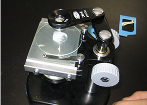☆火成岩を分類した観点を他の人にわかりやすく伝えることができる。 ○自由な発想で,火山岩3種類,深成岩3種類をグループごとに分けさせ,その根拠を発表させる。その後,色と造岩鉱物の大きさで分類することに気づかせる。 ☆火成岩は,火山岩と深成岩に分けられることを観察結果から指摘することができる。 ○火成岩の薄片標本を,偏光板をつけた解剖顕微鏡で観察させ,組織のちがいをより明確にする。 |