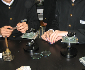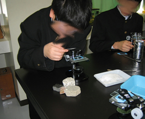 ○鉱物の名前を同定させるために,前時に作ったプレパラートや資料集を参考にさせる。 |