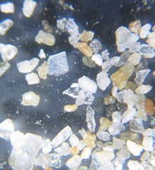 ・ 課題について,科学的な概念を用いて予想をもつことができる。 *海岸の砂は波でけずれるので角がとれて丸くなっている。 *川の砂は流れてくるときに角がとれて丸くなっている。 |