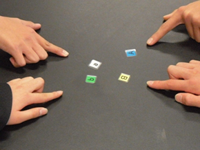④ポケットの中で遺伝子モデルをよく混ぜ(無作為抽出),4人が同時に1個ずつ遺伝子モデルを出し合う。その結果を表に記録する。