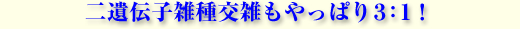 ここまで,中学校では学習しない対立する2組の遺伝子をあつかってきたが,1組ずつに注目してみると実は,中学校教科書であつかう3:1になっている。