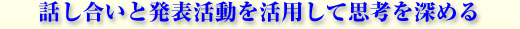話し合いや発表は音声言語を活用した言語活動であるので,話し合ったことや発表を聞いて気付いたことを文字言語として記録させることで,思考したことが残るようにする。