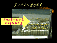 学校周辺でダンゴムシを採集しようと,シャーレ,スコップを手にして回ってみた。文献等では,枯れ葉の下や土の中にすむとあるが,実際には,なかなか見つけることはできなかった。時期的には初冬でもあり,「冬眠準備」,もしくは「暖かい場所への移動」ではないかと思い,暖かい場所(日当たりのよい場所の物陰)を探してみることにした。そこで,職員室横にあるプランターに注目し,プランターを移動させてみると,100cm2区画に5〜20匹見つかった。