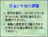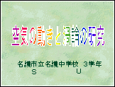 4月にオリエンテーションを行い,5月にテーマを設定,6月に計画書を作成して,7月に観察・実験方法の指導を2時間設定した。夏休み期間中に研究を行い,レポートを作成,2学期はじめに提出する。また,9月中頃にパネルを作成して作品展に出品の後,11月に授業の中で4時間かけて発表会を行う。 発表の際には,パソコンやスキャナー,ビデオ,液晶プロジェクターなどを活用し行わせている。また,プレゼンテーション用ソフトは,パワーポイントを使用している。 <生徒の作成したプレゼンテーションの一部>
