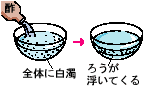 以下にそれぞれの課題の内容を示す。 (1) 石けんからろうそくを作ろう。 固形石けんからろうそくを作り,作ったろうそくを提出する。また,製作の過程で,石けん水に酸を加えるとろうが浮いてくるが,その理由について考えさせ,それをプリントに記入して提出させる。配当時間は,説明の時間として1時間取ってある。 <実験手順>