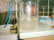 | 1) | 採取した水1リットルをビーカーに入れる。(写真3,4,5)