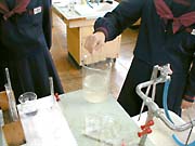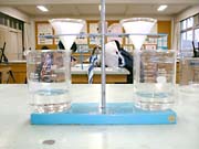 このグループは,高槻市では近くを流れる淀川の水を使って飲料水をつくっているが,自分たちの生活排水もまた淀川に流れ込んでいるということで,淀川に注目して研究を進めていくことにした。そして,近くの浄水施設に見学に行って飲料水のつくり方を教わり,自分たちで飲料水を実際につくることにした。