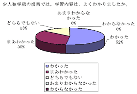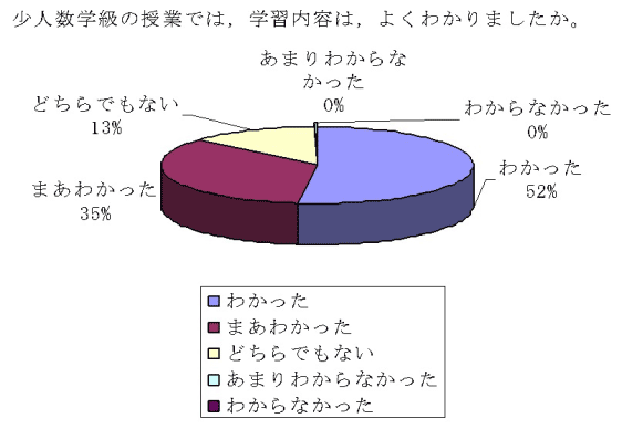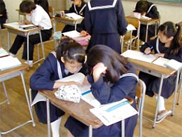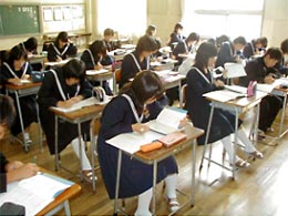 少人数学級によるTTの指導は,生徒にとって,授業を受けやすい形態である。学習内容の理解は,ある程度させることができたのではないか。しかし,基礎的な問題でも,定着が不十分な問題もあり,少人数学級の指導の中で,さらに基礎基本の定着をさせるための手立ての必要性を感じる。さらに,グループ分けの仕方や座席の配置の工夫など,少人数であることのメリットを最大限に生かすような指導の仕方を,研究改善していきたい。 |