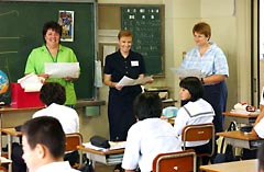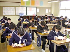 多くの生徒は,全体的には明るく素直で,挨拶もよくでき,勉強にも熱心で真面目に取り組んでいます。クラブ活動にもほとんどの生徒が参加し,練習に励み,市内大会でも好成績を収めています。しかし,現代の子どもたちの特徴もあわせ持っています。これらの子どもたちが,人間としてよりよく生きていけるように,「豊かな心」の育成が急務です。 |