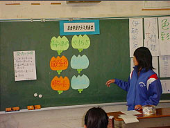 発表方法で多いのは,プリントや画用紙・模造紙によるものであるが,キーワードカードと写真やグラフを組み合わせたり,OHPを使ったり,時間をかけてプレゼンテーションソフトなどに挑戦したりする生徒もいる。