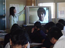 3年生の紹介ビデオを見る場面 |