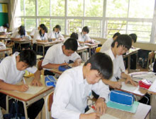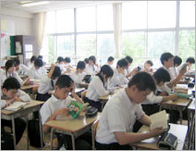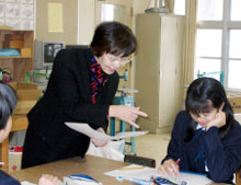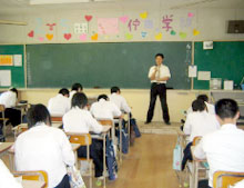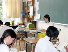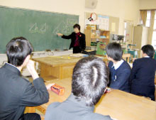 今の中学生は家庭学習の習慣がついておらず,休日はだらだらと過ごしてしまう傾向の生徒が多いことから,土曜日に学校の一部を提供し,その場に学生のボランティアと校長,有志の教員が常駐し勉強のお手伝いをする「サタデースクール」を昨年から開始した。 |
