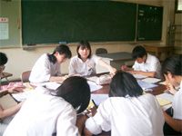 「授業で勝負!」事業に関わっては,非常勤講師を含めて全教員が公開授業を実施し,何か一つでも他人に自慢できるようなよい仕事(授業)を提案するべく頑張っている。象徴的な表現として「売れる授業」を目指している。生徒に対して売れ残るような授業であったり,賞味期限の切れた授業では魅力がない。あの手この手で魅力ある授業づくりにアプローチしている。 |
