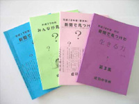 新聞等の情報源から「そうなんだ!」と言う話題や,生徒朝礼での話題を集めた「生きる力の本」(各約130項目の内容)を第1集・第2集・第3集と発行し,生徒にとって保護者やその他の大人との世間話の話題になることを期待すると共に,内容に共感していつの日か「生きる力」のエネルギーになればと願っている。第1集・第2集は,それぞれその年度の3年生の卒業記念品として配付した。今年度は第3集を卒業記念にと考えている。 |