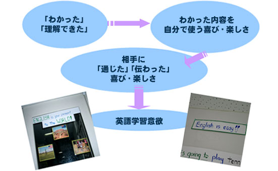 上記の順序で生徒の英語学習意欲を高め,積極的に質問をしたりそれに応じたりする力を育てるために本校英語科では,特に以下の3点に重点を置き授業を行っている。