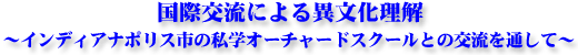 2008年8月19日から5日間にわたり本校生徒と保護者・職員による「アメリカオーチャードスクール訪問とホームステイの旅」を実現することができた。オーチャードスクールでの交流授業や本校の複数教員による授業実践などを通し,生徒・教員そして保護者との交流の和がより広がり,深められた。