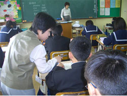 また,各学校では,兼務教員による授業などの指導体制が整うように,下足置き場,事務机などの環境整備を行ったり,小・中学校の日課表の1校時,3校時,5校時を揃えたりして工夫を凝らしています。