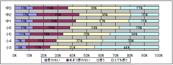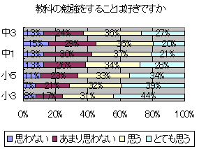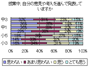 宗像市が平成16年度に実施した「児童生徒の学習意識調査」によると,「勉強が好きだと思わない児童生徒」や「授業中に発表しない児童生徒」が,小学校高学年から増えています。