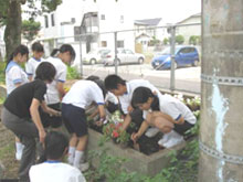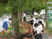 緑化委員会の生徒が,昼の掃除時間を使い,種から育苗や花壇,プランターの整備を行うとともに,全クラスで学級花壇つくり,花壇コンクールを行って環境緑化,美化に取り組んだ。夏季休業等の長期休業日には,全生徒が当番となり水やり,花壇整備,草とりを行った。