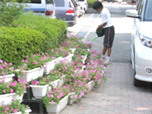 教室へ入りたがらない生徒に対しても計画的に緑化活動を行った。