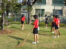 環境部・・・・・・・・・・・・・・ 環境部と生徒指導部,生徒会,部活動と連携した朝の清掃活動,環境緑化,挨拶運動などの企画立案を行う。