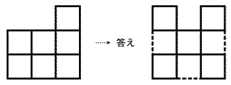 | 「マッチ棒クイズ」 右の図のように,マッチ棒で7個の正方形をつくる。3本移動させて,前と同じ大きさの正方形を5個にへらしなさい。 |  |