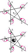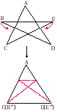 評価(知識・理解) 星形七角形の先端にできる7つの内角の和を求めることができたか。 |
