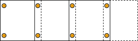 正方形のポスターを掲示板に貼ります。画びょうを節約するために右図のように紙を重ねて画びょうを使います。画びょうが20個あるとき何枚のポスターが貼れるでしょうか。 |