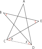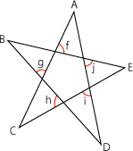 星形多角形には,たくさんの角があります。そこで,角の関係を式に表すことにしました。