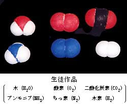 生徒たちの感想の中に次のような声があった。「文化祭などでも,このような分子モデルの展示をしたい」「この分子モデルを持って帰りたい」「もっといろいろな種類の分子モデルをつくりたい」「こんなのが身近に沢山あるんだ」「もしも,こんなものが本当に見えたらおもしろいね」等である。アンケートの集計により,このような感想が約90%以上あることがわかった。資料集などに分子モデルの製作例があるが,見て知っているのと,実際につくってみるのとでは大きな違いがあることを教師自らも感じることができた。 |
