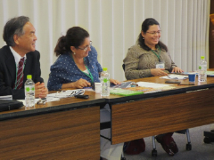まず,教科書作成の流れと教科書の構成についてご説明いたしました。特に,著者の先生方にとても興味深いご様子でした。現場で働く先生が教科書を執筆されることが新鮮であったようで,「何人の先生が関わっているのか?」「どのような専門分野の先生がいるのか?」「著者に必要なスキルは?」などご質問いただきました。また,授業展開や観察実験の方法,参考資料など全単元に渡って深く掘りさげられた内容の日本の指導書に大変驚かれていました。