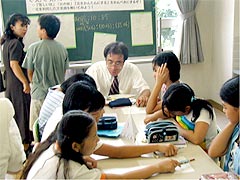 1.はじめに 全校児童に自ら学び,自ら考える力を育成するとともに,基礎的基本的な内容の確実な定着を図り,個性を生かす教育の充実を図ることは,新学習指導要領の教育課程編成の一般方針に示された教育のこれからの指針を示す内容である。 本校は,平成7年度よりTT加配の教員を中心としながら,児童一人一人に応じたTT学習を日常的に実施してきた。平成13年度からは,少人数加配の教員に加え,習熟度別学習の講師の加配も受け,よりきめ細かく,児童の実態に応じた指導が実施できる指導体制を確立することができた。 2.研究のねらい 本来,子どもたちは,常によりよくわかろう,よりよく学ぼう,よりよく生きようとする意欲を持っている。子どもたちの伸びようとする芽を大切に育てることが教師の仕事である。そのためにも,子どもたちがどのように努力すればよいか,その道しるべを示すことが教師としての指導力である。 本研究では,児童自らが,自分自身のつまずきや課題を自分自身で見つけたり,自分の興味・関心のある課題をさらに深めたりできるように自分の学習状況や課題を自分でつかむ能力(自己評価能力)の育成を研究の中核に据えながら研究を進めてきた。そして,算数,理科という2つの教科を通して,児童の習熟の度合いに応じた学習(習熟度別学習)を実践し,児童の個性を生かし,学力向上を図る指導の工夫を試みた。 3.本校の習熟度別学習 本研究でとらえている習熟度別学習とは,児童の学習内容の習熟の度合いに応じた学習である。1クラス40人近い子どもたちの学習内容の習熟の度合いは,かなり幅広いものがある。最低限の目標である学習指導要領の内容まで習熟ができない児童から,はるか優れた能力を持ち学習指導要領の内容まででは飽き足らない児童も存在する。このような多様な児童の実態を画一一斉の授業で同一の到達目標を持つ授業を構成することは,落ちこぼれをつくるとともに,伸びこぼしもつくることにつながる。そのためには,基礎基本の習得をねらいとする本単元の学習も単一ではなく複線型の授業を構成し,児童の学び方や,理解の速さ等,児童の学習スタイルに応じた少人数学習集団に応じた授業形態が必要となる。また,単元末では今までの学習内容の習熟の程度を自ら振り返り,基礎的基本的な内容の習熟の足りない児童には復習・補充的な内容,十分習熟している児童には学習内容を発展させた内容に取り組ませ,児童それぞれ力をさらに伸ばそうと考えた。本研究では算数の全時間を通して児童の習熟の程度に応じた学習を実現させようと考えた。単元途中の学習スタイルに応じた小集団学習をコース選択学習と呼び,単元末の補充・発展学習を課題選択学習と名付け,いずれも児童の自己評価をもとに児童自身が自分の習熟の度合いに応じた課題を選択させるものとした。 <http://www.city.arakawa.tokyo.jp/DAI3NIPPORI-E/kenhp/concept.htm>