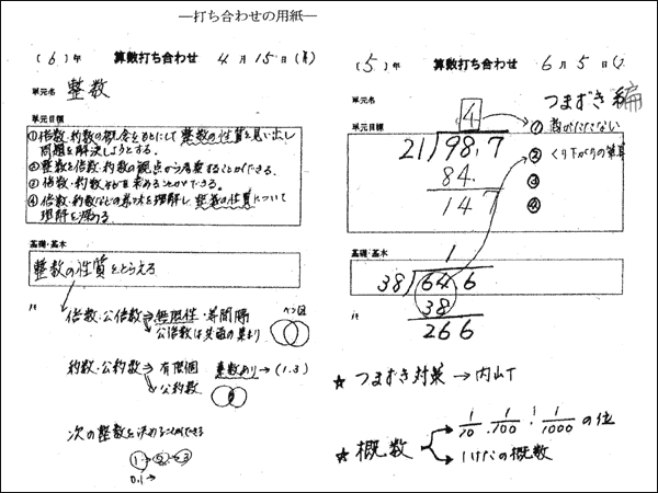 具体的なやり方や指導の重点等は,単元前に打ち合わせをする。