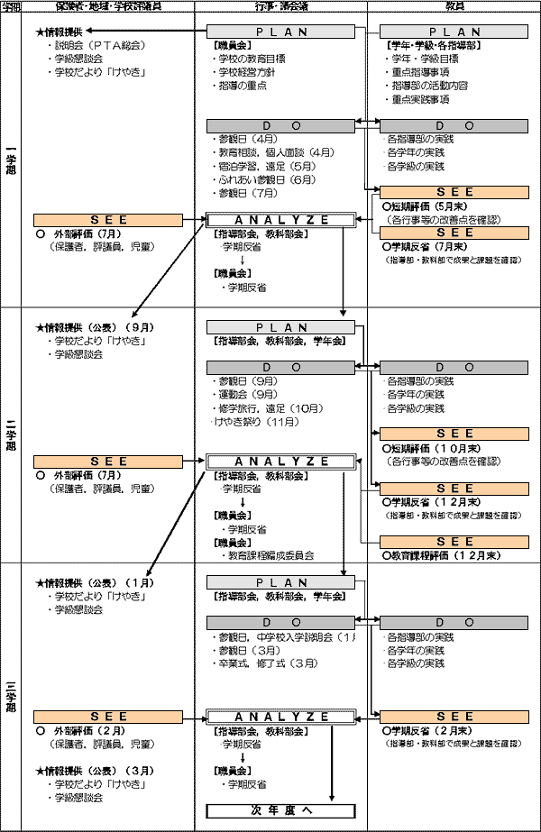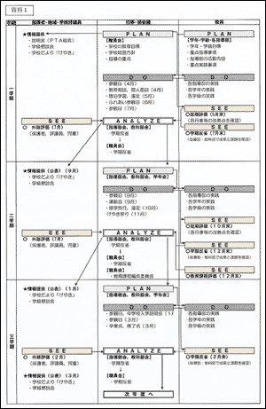 年間を通してPDCAのシステムを作成し,見通しをもって計画的に実践・評価を行い,教育活動の改善に生かす。