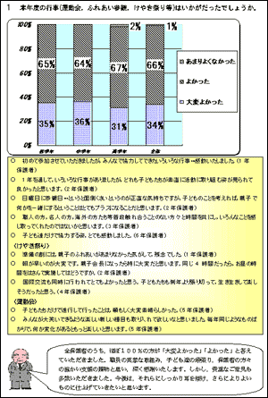 また,1年間の子どもの成長に目を向けてもらうための質問項目も設け,プラス面から子どもの生活を見直すきっかけ作りを行った。