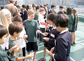 港区では,「国際人育成を目指す教育特区」として,国から構造改革特別区地域計画の認定を受けた。芝小学校では,その特区指定校として平成18年4月から国際科がスタートしている。本校は,6年前から英語活動や国際理解教育に取り組んできたので,子どもたちや保護者には問題なくに受け入れてもらうことができた。