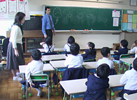 本校では,子どもたちに,国際コミュニケーションの基礎を培う活動を通して,確かな学力と豊かな心をはぐくんでいる。