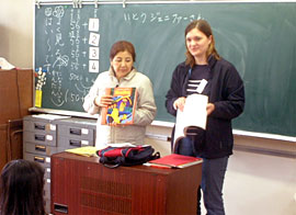 外国人講師は,週に4日間の常駐で,国際科の授業のほかに,少人数での会食やクラブ活動にも取り組んでいる。