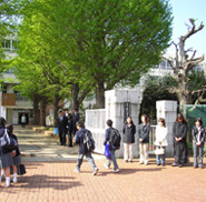 学校の近隣を流れる多摩川は逆S字型の優美なカーブを描き,美しい風景を生み出している。川沿いの堤防には桜の木が植えられ,春には桜の花一色に埋め尽くされる。
