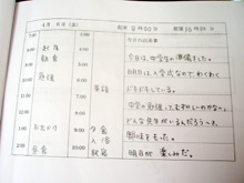 一日の生活(何時に何をしたか。今日の出来事を記入) |