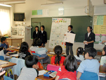 一昨年度より,地元の小学校を訪問し,3・4年生を対象に作成したマップを使って,地域の安全に関する事項の説明を行うという取り組みを実施している。その説明を受けた後,小学校では,発達段階に応じた安全マップの作成を行っている。