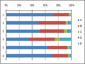 A(よい,そう思う) B(おおむねよい,どちらかといえばそう思う) C(ややよくない,どちらかといえばそう思わない) D(よくない,思わない) E(わからない) |