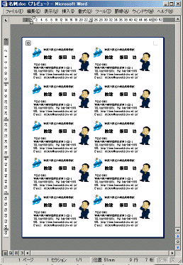 ワープロソフトでは名刺カードに合った書式を指定し、個人情報を入力していきます。そこに先ほど作った似顔絵を貼りつけ、1枚分の名刺が完成したら、その1枚をコピーしてA4に10枚にします。その際に、1枚は学校提出用として自分の個人情報を、学校の住所と電話番号に代えたものを作っておきます。