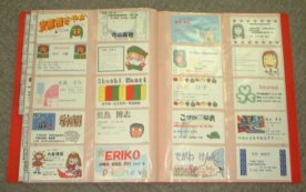 印刷後はミシン目で切り取り1枚は提出し,9枚は自分用になりますが、生徒はできあがった名刺を交換し、さっそくコミュニケーションが始まります。教師はこの瞬間にこの授業の達成感を味わえます。提出した名刺を名刺用のクリアファイルに入れるようにすると未提出者がすぐわかり便利でした。
