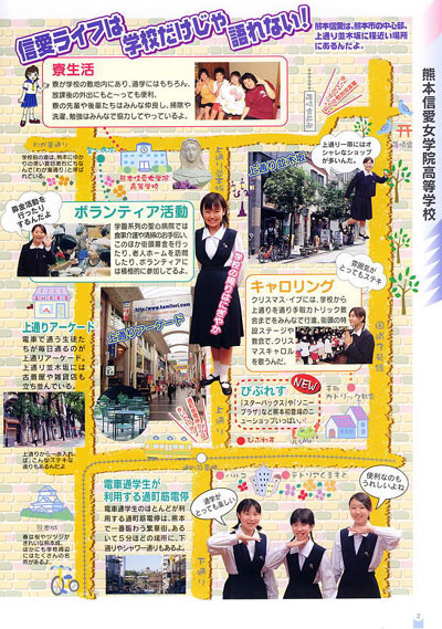 | 熊本信愛女学院では、カトリック精神を基盤とする教育理念に基づき生徒の一人ひとりが主体性を確立し、それぞれの可能性を最大限に伸ばして自己形成を図ると共に、女性として豊かな心をもって、社会の建設に貢献する人間を育成することを目標にしている。 また、熊本市中心部に位置し、恵まれた通学環境にある。 |