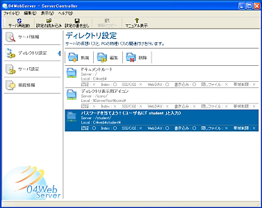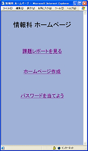 | 本校では,授業の円滑な進行と各生徒の理解度に柔軟に対応するため,状況に応じてWebサーバを設置し,活用しています。以下に活用例を示します。 (1)校内LANに限定したWebサーバ 生徒への資料提示や問題解決のツールを提供するためには,校内LANに限定したWebサーバがあると便利です。ここでは,04WebServer(*1)を例に,授業実践を以下にまとめます。 (*1)フリーウェア。Soft3304が開発。インストールや設定が簡単な上に,WebフォルダやCGIが活用でき,SSL暗号化通信も利用可能。 [1] 授業用のページ 学外のネットワークと切り離して使用できるので,生徒にインターネット等の学外の情報を参照せずに授業に専念させることができます。また,生徒が作成したレポートやホームページを参照し,授業に必要な情報だけを選択できるようにしています。