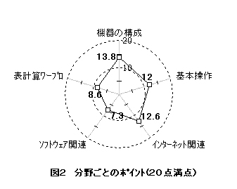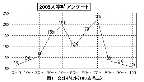 全体のポイント(図1)にピークが二つあることから、格差がはっきりと読み取れました。両極端の生徒がいることから、家庭間の格差、グループ実習による弊害などを感じ取りました。 |