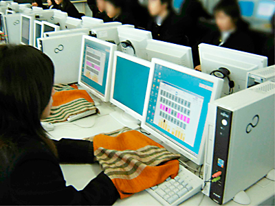 | (1) 概要 「基本的な情報活用能力」の育成を目的としました。 特に入学早々には、全員が基礎的な実習を通して基本を再確認し、経験の少ない生徒を引き上げることを目標にしました。 曖昧なままになりやすい名称や用語、操作方法なども、できるだけ正確に紹介するとともに、その後の学習の基礎となる事柄を意識的に盛り込むように工夫しました。そして、経験が豊富な生徒にとっても、「科学的な理解」「情報社会に参画する態度」の学習の基礎として、その後の学習に活かせる内容となることを期待しました。 (2)授業展開